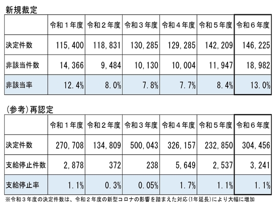 第1に、障害年金の新規請求に対する不支給率が上昇したということです。一方、再認定の不支給率は変わっていません。