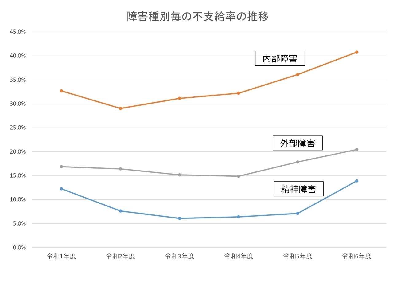 その際にも、障害種別毎の不支給率には大きな差があり、特に内部障害は、精神障害や外部障害に比べると不支給率が高いことをお伝えしました。