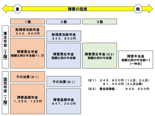 障害年金の額は、老齢年金や遺族年金と同様、賃金変動率や物価変動率などに応じて毎年見直しが行われます。